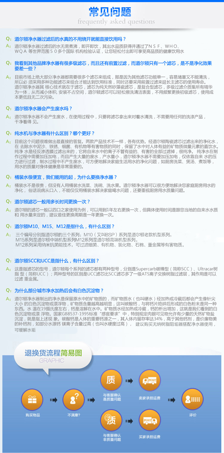 產(chǎn)品類型:臺下型,獨立龍頭 機身材質(zhì):304食品級光面不銹鋼 出水流量:120公升/小時 最低水壓:1bar 過濾的精度:0.5微米 使用的范圍:僅用于市政自來水過濾 機身重量:2.25kg,濾芯使用壽命:1-2年 是否廢水:無需用電,不產(chǎn)生廢水 操作的溫度:5-38度 產(chǎn)品保修期:一年